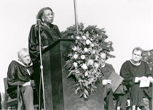 ©EIRNS/Stuart K. Lewis Mrs. Amelia Boynton Robinson addressing Loudoun Valley High School seniors at graduation ceremonies, June 19, 2001 in Purcellville, VA |