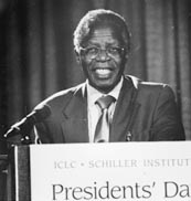 With Zimbabwe's March 9, 2002 scheduled Presidential elections three weeks away, Dr. Mubako, the Ambassador of Zimbabwe to the United States, gave this report of his country's fight for sovereignty against a global British campaign. The speech was given February 16, to the Presidents' Day 2002 national conference of the Schiller Institute and International Caucus of Labor Committees, on the panel keynoted by economist, stataesman, and U.S. Presidential pre-candidate Lyndon LaRouche.