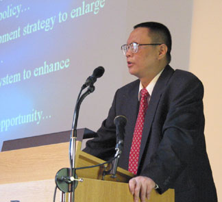 Good morning, Ladies and Gentlemen. It's my great pleasure to have this opportunity to address the conference. As you know, the rising of China is an important event in the 21st Century. As a peace-loving country, with a long history of splendid ancient civilization, China's development will constitute no threat to any country. On the contrary, a prosperous China is not only in the interest of the Chinese peoplewhich account for one-fifth of the total population living on this planetbut also will provide more opportunities to other countries. We will benefit the other countries' development. With the construction of the Euro-Asia Land-Bridges, especially the expansion of the network of railroads in these two continents, China's connection, and the cooperation with the European countries, has also been intensified. As you know, the European countries in total, are the third largest trading partner of China, and Germany is China's first trading partner in the EU. Just as has been mentioned, China is involved in getting a lot of technologies, and equipment and capital, from Germany. The first magnetic-levitation rail line in the world has been put into operation in Shanghai, which is a symbol of the cooperation between China and Germany. You have discussed a lot of things about how to construct Land-Bridges on these two continents; so today, I would like to tell you something about the prospects for China's economic development, and its new measures for opening up. Measures Against 'Asia Crisis'Over the past several years, especially since 1997, the internal conditions for China's economic development have changed drastically. So, for the external environment, we have seen the Asian economic crisis, the IT bubble bursting in the United States, the U.S. recession, the slowdown in the world economy in recent yearsall these events have made China's external environment worse. At the same time, since China has increased its productivity radically since the initiation of economic reform, most of the products in China's markets have been in excess supply, since the midthe later part of the 1980s. And on the other hand, the economic restructuring, especially the structural adjustments in the state-owned enterprises, also generated a lot of laid-off workers, which added new difficulties for China's economic development. Generally speaking, currently, with the changing environment, the insufficiency of effective demand has been a major constraint on China's economic development. So, in order to maintain a rapid economic growth, China's government has taken a series of measures in response to this changing environment. From 1998, 1997, the Chinese government has shifted its economic development strategy from focusing on stimulating exports, to expanding domestic demand. During the [Asian] financial crisis, as a responsible country in the world, China insisted on maintaining the stability of the exchange rate of its currency with the other countries, which has not only helped stabilize the situation in East Asia, but also enhanced foreign investment in the Chinese economy. And at the same time, the Chinese government took other measures, such as the tax refund to give some support for the export sector. Most important, from 1998, the Chinese government began to adopt a pro-active fiscal policy, and a prudent monetary policy, by issuing a large amount of Treasury bonds, to put money into the construction of infrastructure. In 1999, the Chinese government initiated another great strategy; that is, to implement the Western Development Strategy to enlarge China's economic development space. So, this western development campaign, combined with the pro-active fiscal policy, put more and more money into construction in the western part of China, especially in railroads, pipelines, power grids and so on. Besides this, the Chinese government also put a lot of money into strengthening the social security system, to provide basic support for the laid-off workers, and to enhance consumer confidence. So, generally speaking, over the past five years, the Chinese government has taken a series of measures that have helped China to overcome the difficulties generated by the financial crisis in Asia, and the market changes in China itself. Eurasian Economic CooperationAt the same time, China also stepped up its efforts to participate in international cooperation. So, this slide shows some aspects in which China has been involved. For example, in regional economic cooperation, China has established bilateral currency swaps with Japan, South Korea, Thailand, and so on, designed to stabilize the financial situation in Asia. On the other hand, China also has undertaken cooperation with Japan, South Korea, and the ten ASEAN countries, in the "10+3" framework; and now China is negotiating with the ASEAN countries to establish a Free Trade Area in ten years. In Eurasian economic cooperation, the Chinese government has taken a very active attitude to strengthening the political dialogue between China and the European Union, and also proposed a lot of beneficial suggestions on how to strengthen bilateral trade and economic relations with the European countries. Also, in more broad areasthat means in the Asia-Pacific basinChina has taken some measures to facilitate the environment, and the trade among the Asia-Pacific areas. On the other hand, the most important thing for China, in recent years, is that China has gone a long way to enter the World Trade Organization (WTO), which means that China has fully integrated with the world economy. So, this figure (Figure 1): As you can see, with these measures, China has maintained a rapid economic growth over the past five years; and over this time, you can see that no matter where the world economy growth rate, or that of Japan, the United States, or European countriesthe growth rate has been falteringbut China has largely maintained a quite stable growth rate, between 7% to 8%. Now, 