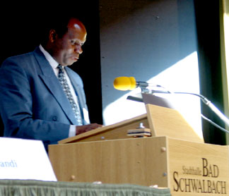 Mr. Jean Gahururu, who represents us regulatrly in theses meetings, had given us a foretaste of the beautiful ideas developed by Mr. LaRouche, and by some of his associates whom I have had the pleasure of meeting here. By participating in person, I have discovered in you a dimension which goes beyond anything we can read, or can be told about, on the subject of your very powerful conviction in defense of peace and development in the world. I make the wish that your ideas will triumph, so that tomorrow's world may be governed by men and women of your type of spirit: judicious, reasonable, and human. You have been working at this for years, and we are very proud of joining you and of traveling together with you on this road towards a better world. However, unfortunately we are not there yet. A number of countries are governed by incompetents, by idiots, as Mr. LaRouche had mentioned. Our hearts are heavy when we see what is going on in Iraq (many speakers mentioned it); and we feel the same about Rwanda, which is living through a tragedy since 1990, which is spilling over to our neighbors. In an answer to a question, Mr. LaRouche did not fail to underscore the fact that genocides in Africa are the work of foreign powers like the United States. In the case of Rwanda, a number of facts could corroborate this statement (without forgetting the important part played by Rwanda executioners, themselves):