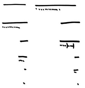 So, let's investigate whether we can figure it out or not (Figure 6). To find out if two numbers can be looked at in terms of each otherI forget who came up with thisthere is this process: See the black line onto the thick line on top, on the left and the right. It's two quantities. See if you can compare these two with each other. Take the shorter one and remove it from the longer one. And you see if you can put the longer into the short one again. Here it works. This new shorter length goes into the length on the left twice. A relationship of 2:3 or 11/2. Maybe we have to keep trying and spend our whole life, looking for the size of the side of the square (Figure 7).