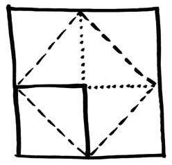 We'll go back to the Greeks, to Plato: the Meno dialogue of Socrates with the slave-boy Meno. Socrates asks the slave-boy a simple question: "You have never been trained in geometry, have you?" And the boy says, "No." And Socrates: "Okay, here is a square. I want you to double that square, to make it twice as big" (Figure 1). Has anybody an idea, what the slave-boy's first guess is? [Someone in the audience replies.]