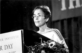 And that was Marianna: She never burdened anybody or talked about the pains that she had had. But, one thing about it: God never makes a mistake. Whatever He does, it is for the good. She had done what she was delegated to do, when she was born.... But the thing about it is, some of us look at death, as being something that is harsh, that is dark, and gloomy. But, it isn't. Marianna's life proves, that it is something that you can give the worldgive the worldas we say, Give the world the best you have, and the best will come back to you. Marianna knows what we're doing. She knows about this meeting. She knows the hearts of those who knew her, and gave the best that they had. And she knows what's going on. Someone said, one timein fact, I've heard many a timespeaking about reincarnation, that (and I have questioned it quite a bit, and I still do), about your coming back. And, when you come back, the Lord sends you back, to purify you, that you may not do the things that you used to do. And, I said, Well, what happens when you have done all of the things? You have come back so many times, and now you're purified. They said, Well, God takes you to Heaven. He just lets you stay on Earth, long enough for people to know. And, you give sunshine. You help the poor. You do whatever you can to lift the burdens of others. Then, He takes you on home. That's Marianna. It's not a case of being burdened. It's a case of happiness, because it's just like, you're in a house. Oh yes, you like your house; you like the things that are in it. Well, this body is a house. And, if a house is on fire, the first thing you think about, is getting out! Because the material things will pass away, but I'm out of the house. And, that's the way it is with death. You have gotten out of this body, which is your house. And the soul, the spirit, that God has given us, returns to God Who gave it. And, there, where there's no more weeping, no more sorrow, no more pains, and no more death, because, you're in the arms of God. So, I can just imagine, seeing the angels stooping down, and taking that soul and carrying it on to Heaven. We have to look at that as being something that is wonderful. And we say now, so often, that we're going to have a celebration when somebody dies. And truly, when we look at their going into another world, and they have done the best they could on this Earth, and they have given of themselvesyes, they are going home, and it is a celebration. I wrote a poem, if I can read it. And maybe, it has been read by others: Within a land, I've lived and I've dined,And all its riches freely mine. Here, shines one day, yet come what may, For all my follies passed away. My Savior came and walked with me, Such sweet communion here have we. He gently led me by his hand: 'Child, this is Heaven's border land.' The music that was sung for me, Great songs of Heaven's melody, As angels on their white-robed throne Joined in the sweet redemptive song. O heavenly land, sweet heavenly land As on the highest mount I stand, I look away across the sea, Where mansions are prepared for me And all mankind who loveth Thee. Not only for me, but for you, and for you, for each one us, who realize that we are going to have to leave this world, regardless of how well we like it, or how sad we may be. We cannot see death. But it's there. And, we realize that we can'tas far as I can see, we don't come back.... Thank you. A Celebration of the Life of Marianna WertzWill Wertz: My wife, Marianna Wertz, died on Jan. 15, 2003, Martin Luther King's birthday. Marianna was what Friedrich Schiller described as a beautiful soul, and in her triumph over death and disease, in her embrace of immortality, she achieved what Schiller described as a sublime state of mind. In celebrating her life tonight, what she would wish that I do, is give especially the youth here, who are the future leadership of this nation and the world, knowledge of the fight she waged and the race she won. Marianna was born in Pasadena, California on Aug. 14, 1948. Her parents were Jacob Chaitkin and Janet Rosenbaum. She was the elder of fraternal twins and was named after her father's mother. Her father, Jacob Chaitkin, was a fighter for justice. He left Latvia in 1912 to come to the U.S., where in the 1930s he faced off against John Foster Dulles in a successful suit against the Wall Street partners of the Nazi regime on behalf of American bondholders. As a result, he was hired by the American Jewish Congress to lead a boycott against the Nazi regime of Adolf Hitler.... He served in Army Air Corps Intelligence during World War II and after the war, moved to California, where he taught scientific Russian and law at California Technical Institute. Unfortunately, he died at age 57 when Marianna was seven years old and Tony 12, but his character clearly had a major formative impact on both Marianna and Tony, and later clearly led them both to embrace Lyndon LaRouche. Marianna attended Alexander Hamilton Elementary School and then Woodrow Wilson High School. Her parents were both FDR Democrats. When she was in high school, Marianna became the president of the Girls' League, succeeding the previous president, Anne Roosevelt, the daughter of Eleanor and Franklin's son James. After attending the University of California at Santa Barbara for one year, Marianna graduated from UCLA in political science. She was accepted at Columbia University Law School, but instead went to Harvard, where she received a masters in education.... In 1971, she visited her brother and sister-in-law, Tony and Janice, during the summer at Cape Cod. Lyndon LaRouche had been there as well, but had left before she arrived. As occurred a number of times in her life, music was a decisive factor in her decision to join the LaRouche political movement. She played the violin and loved Felix Mendelssohn's Violin Concerto, but had never heard Beethoven's. When she did, it helped her make the decison to join Lyndon LaRouc