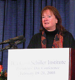 A NEW WORLD AGENDA: STOP THE GENOCIDE!Here is the keynote of Helga Zepp-LaRouche to the ICLC/Schiller Institute annual Presidents' Day conference on Feb. 19, 2005. She was introduced, as always, by Amelia Boynton Robinson, who turned the podium over to LaRouche Youth Movement activist Erin Smith. Helga's presentation was entitled: "It's Time To Put Out the Flames of the Thirty Years War: Let's Create a Beautiful Mankind!" HELGA ZEPP-LAROUCHE: Well, thank you, Amelia and thank you, Erin, for this very loving introduction. I think everybody is awareeverybody in this room and people in Los Angeles, and elsewhere watching this on the internetthat we are at a point in history, where the outcome of this historical moment will be decided, to a very large extent, by what is happening inside the United States. The great destiny of mankind, as my favorite poet Schiller would have said, is being decided in this country. And you, you all personally sitting here in the audience, and people watching on the internet, and elsewhere in the country, and the impact you have in changing the American population, away from the present course of action of the government, is the absolute key. It's the key, if we will see in the coming period, worldwide chaos, following the crash of the financial system, which we are absolutely on the verge of, and the rapid descent into global asymmetric nuclear warfare. And, as I will go through in the beginning of my presentation, we are already sitting on a volcano which indeed could erupt at any moment into a global nuclear war, plunging the world into a Dark Age. This is the one option. But, I think we are actually quite optimistic, that through our deeds and through our intervention, we will realize the other alternative, which is what LoÃõpez Portillo a couple of years ago said, that the world is now listening more and more "to the wise words of Lyndon LaRouche." And it is about time that the Americans are "listening to the wise words of Lyndon LaRouche," because internationally, I can assure you, the whole world looks at Lyn as the hope to turn the situation in the United States. And there's nobody of any significant stature in the world, who has any doubt that it is Lyn's personal leadership which has catalyzed the present opposition to the war drive, and the drive for fascism inside the United States. Now, therefore, to say it in the beginning, I'm very optimistic that we can accomplish the positive solutions which Lyn has been campaigning for, for the last 30, if not 45-50 years: namely, a just new world economic order, a New Bretton Woods system, and global reconstruction. And Lyn has clearly defined that the way to do this, is to stop the privatization of Social Security through a bipartisan alliance inside the United States, which is becoming more and more visible, that a large section of the Republican Party does not agree with the neo-con domestic policy, which is robbing the poor of their last penny, and foreign policy, which is an imperial, unilateral policy; but, who agree that the American Constitution and the American Declaration of Independence is the true identity of the United States. Now, therefore, what we have to accomplish, fundamentally, in this period, is to go back to the real purpose of America in history: The ideas of the American Revolution and the Declaration of Independence. So, the issues at stake, and this is something you all have been thinking about, and I want you to afresh make your personal view and your personal relation to what is at stakenamely, the destiny of mankind, which depends entirely on our ability to mobilize and change the American people, away from the present course, back to its origins. Now, as Lyn said recently, the new Thirty Years' War already is pretty advanced. This Thirty Years' War may have started with the vote in Florida in January 2001; it may have started with the Sept. 11 events; it may have started with the attack on Afghanistan; it for sure continued in Afghanistan, which is now completely in a catastrophic situation under the control of the drug warlords. It continued with the war against Iraq, which, as you know, is completely out of control: 1,400 American soldiers, minimum, have died. Many, many more have been wounded, and are shipped back in the most despicable way, back to the United States, not being treated better than human cattle (which is a scandal all by itself). The situation in Iraq, being completely out of control. The separation and division of the country is threatening to occur, which would immediately engulf the region into more wars, between Turkey-Kurdistan, the new possibility of a Kurdistan, and so forth. But now, we have, with the new assassination with the former Prime Minister Rafik al-Hariri of Lebanon, a situation where a new bomb has been thrown. A journalist with the name of Robert Fisk wrote in the Independent, that anyone setting out to murder Hariri would know how this could reopen all the fissures of the civil war which lasted from 1975 to 1990. And this could, in the short term, given the fact that now Syria is being beaten up by the administration, by the Israelis, it could lead in the short term to a new foreign policy crisis or even a new war. And, the world is not buying this, but for example, on Tuesday, Radio France Internationale, which is the radio of record for the Quai d'Orsay (for the Foreign Office in France), said that there are three suspects which could have done that. Naturally, the most obvious would be Syria, but, especially because it is the most obvious, it is not the most likely and credible, because Syria has everything to lose. It is risking a full-fledged confrontation with Washington. It is risking to lose support from Saudi Arabia, on which Syria economically and otherwise completely depends, and therefore, it would be suicide for Syria to do this, and therefore it would not make sense. Then, one day later, the same radio had their chief editor
