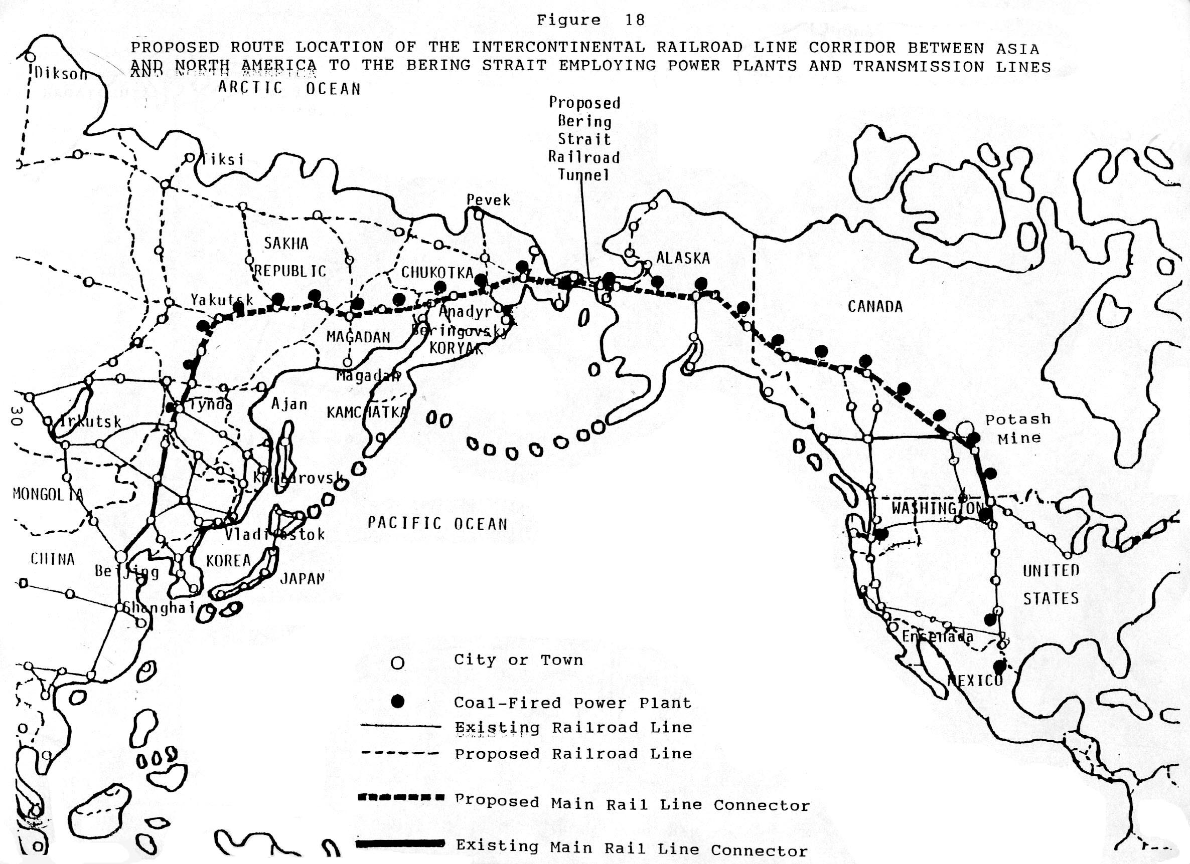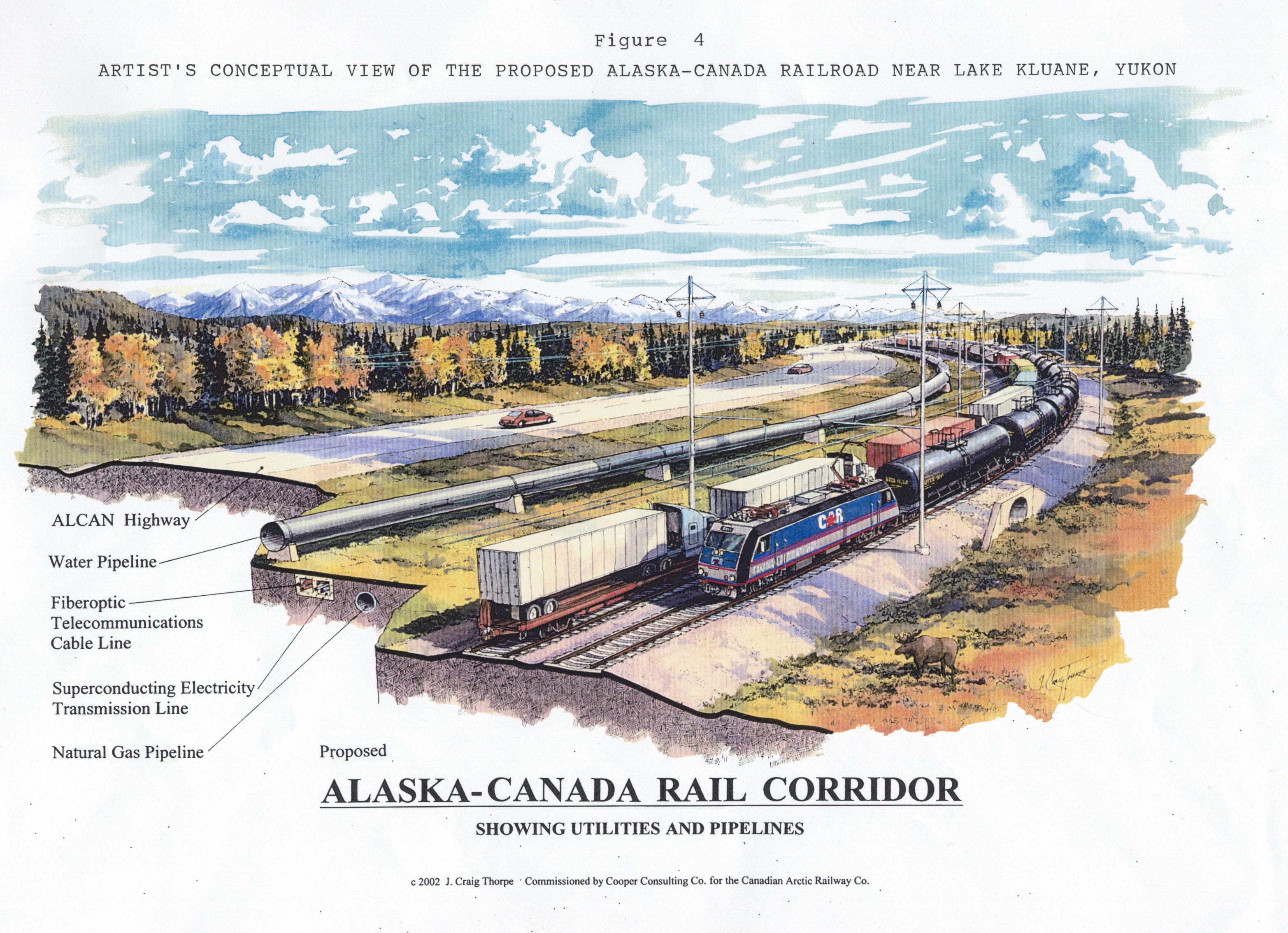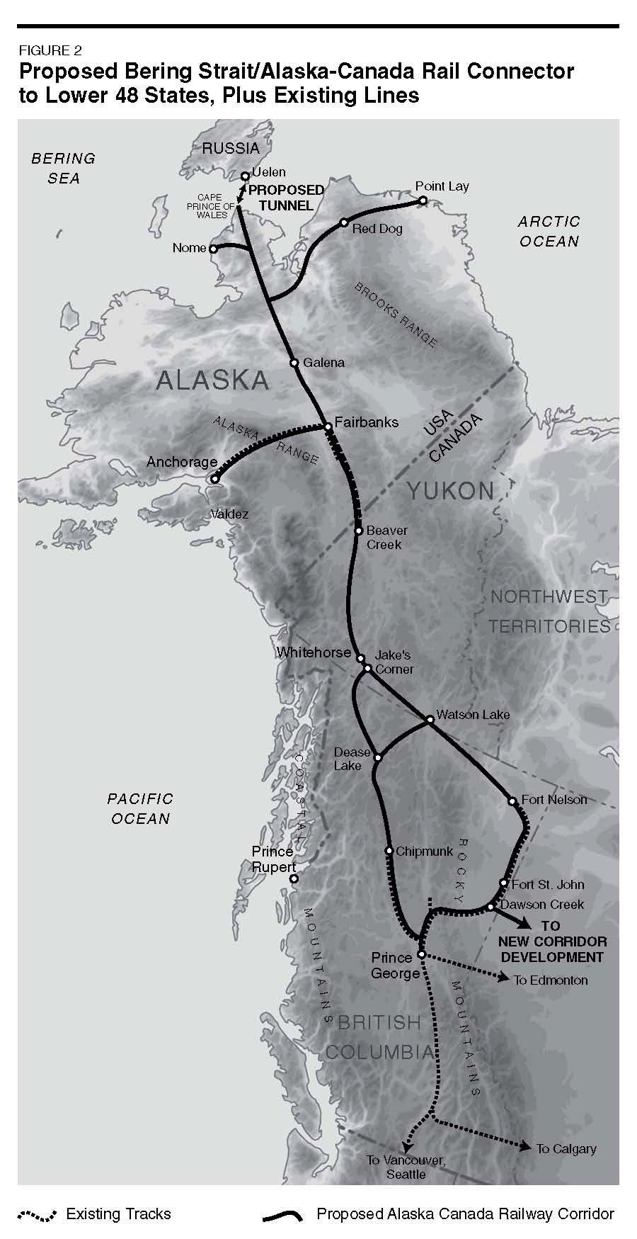 The present paper is based on the results of a detailed technical and economic analysis of the proposed Alaska-Canada railroad connector project, in a feasibility study prepared for the Canadian Arctic Railway Company of Vancouver, British Columbia in Canada by the Cooper Consulting Company of Kirkland, Washington in the United States. This feasibility study has been concentrated on the construction and operation of the proposed Alaska-Canada railroad project from Fairbanks, Alaska to Prince George, British Columbia and Dawson Creek, British Columbia over a 2,190 mile (3,515 km) route distance. This feasibility study has evaluated the expected impacts upon the Alaska-Canada railroad project resulting from the construction of the proposed Alaska natural gas pipeline from Prudhoe Bay to Alberta and the Midwest. This feasibility study has also examined the impact of the proposed construction of the Bering Strait railroad tunnel between Alaska and Siberia upon the viability of the Alaska-Canada railroad connector project and of the entire region as a part of an overall 12,500 mile (20,000 km) railroad network to connect North America with Eurasia, as part of an overall worldwide direct rail network.