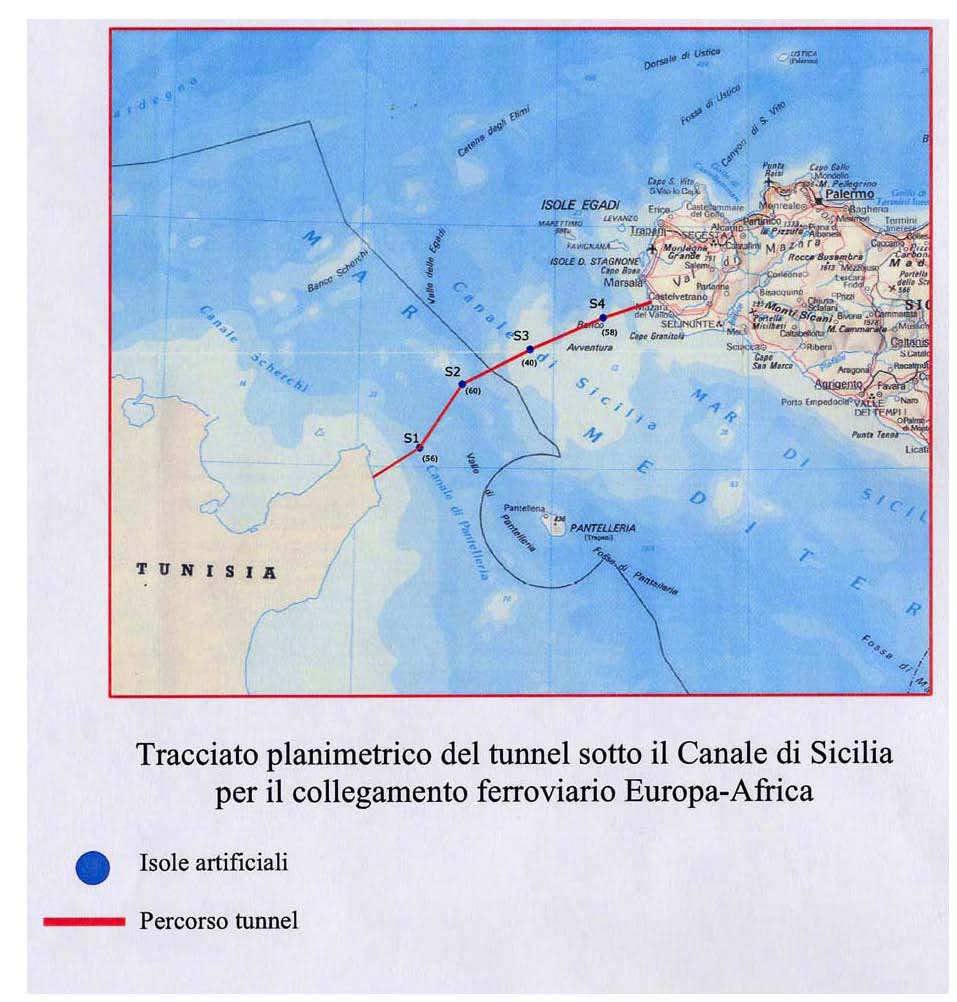 The Italian Agency for Alternative Energies (ENEA) and the Sicilian Regional government have recently presented a feasibility study concerning underground and underwater segments of up to 60 kilometers, for a tunnel across the Channel of Sicily, connecting Italy with Tunisia. Therefore, in the case under examination, researchers have suggested the construction of four intermediate islands which will be built with the excavated material; in this manner, the cost of waste disposal will also be reduced. In addition, the four islands would represent a financial asset in the operation, because they can be utilized for stocking the local sea fauna and selective fishing, as well as for quality tourism.