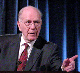 Q: I'm Peter [Margot] from Montreal, and I'd like to address a practical question to you: We're in a year of Presidential campaigning in the United States, and we have problems in Canada as well, with a minority government, which can't really make very large decisions. What do you think the political potential is in realizing some of your visionary hopes, in terms of the present political situation, both in North America and elsewhere?