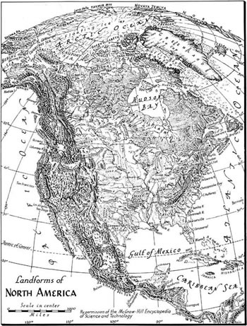 The North American Water and Power Alliance (NAWAPA), designed by Parsons engineering company in the 1960s, is an integrated water, power, and agricultural project, which proposes to take about 17% of the annual runoff of the rivers of Alaska and northern Canada (some 1,000 km3 of water), and channel it southward to Canada, the U.S.A., and Mexico. The topographical map of North America (right) shows how closely NAWAPAPlus coheres with the geophysical aspects of the region. |