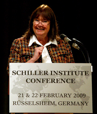 ![]() EIRNS/Julien Lemaître Helga Zepp-LaRouche addresses the Schiller Conference. |