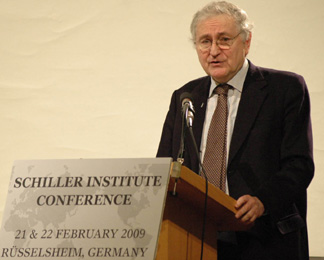 | Jacques Cheminade, president of France’s Solidarity and Progress party (Solidarité et Progrès) addressed the conference on Feb. 22. The panel was entitled, Is Mankind Capable of Governing Himself? |