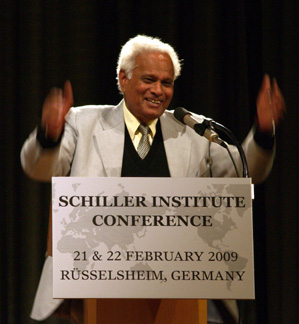 Incidentally, it marks this year, the half a century of my first interface of a stint with your country, Germany, which I visited for the first time in 1959. I was impressed by what in those days used to be called the German miracle. But, as a young lecturer of international relations from India, I had just begun my academic career, I was not aware of all the complications, the techniques, the mechanisms of this recovery. And here, you know, my association with the LaRouche movement, with this young coupleever young, because youthfulness is not measured by age. Well, his youthfulness, his exuberance, his optimism is simply infectious, and it has infected me, and not me alone, but many in my country.
