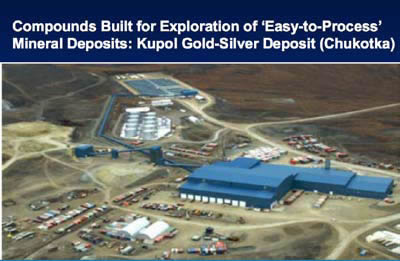 And the third kind of settlement is really very interesting. This is the area of a gold and silver deposit, named Kupol (Figure 12). The deposit is being developed by the Kinross gold company, together with the Chukotka government: 25% Chukotka government, and 75% Kinross company. In fact, gold deposits are more or less easy to process. What does that mean? The enrichment of the ore is mostly mechanical, so the processing factory is not very big.