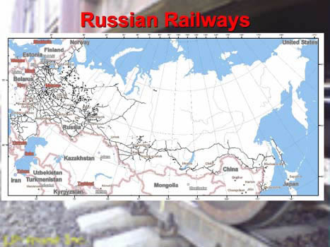 Figure 1 shows the currently existing Russian railways. You can see the European part, and the Trans-Siberian Railroad, and what we call the Baikal-Amur Mainline. And you can see this strange appendix going to western Siberia. What is also important, here, in the north, is a small railway, in the middle of nowhere.