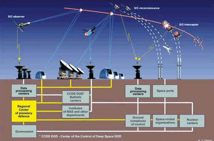 It should be noted that Russia definitely has something to offer in the creation of a global system of planetary defense. I am referring mainly to the Citadel system, developed at Lavochkin (Figure 9). This system was worked out “on paper” more than a dozen years ago; it was assumed then that it would take no more than 7-8 years to implement the hardware. The political decision to create the Citadel Planetary Defense System (PDS) was not made at that time, however, perhaps because it would have required effective cooperation among different countries and space agencies.