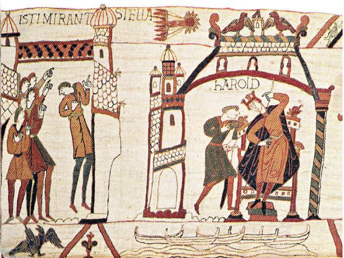 The first periodic comet known to mankind is the famous Halley’s Comet. Observations of it are depicted in Babylonian astronomical diaries and in Chinese chronicles from the Era of the Warring States [203-221 B.C.]. The fiery “broom star” already then was considered a herald of impending trouble—the Roman Sibylline Books say that the comet will be a “sign of the sword, famine, death, and the fall of leaders and great people.” The appearance of the comet in the Fifth Century A.D. coincided with the invasion of Attila the Hun, and in the 11th Century, with the Norman conquest of England. The latter event is depicted in the famous Bayeux Tapestry (Figure 1). Russian chronicles of the 13th Century talk about “the horrible star,” with its rays extending to the east, the direction from which the Mongol hordes soon invaded Russia.