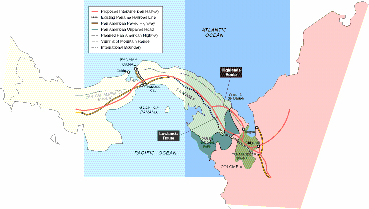 Proposed Route Options for the InterAmerican Railway Through the Darien Gap of Panama