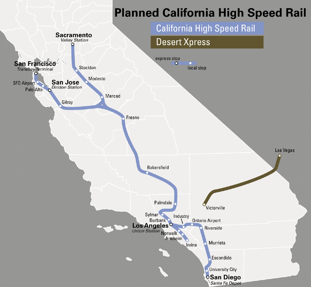 The California High-Speed Rail project—the construction contract for the first 26-mile section, from Maduro to Fresno (Figure 2), was awarded two weeks ago. That’s good. There’s been a lot of controversy about that project. What has been proposed needs to get built; but there needs to be another line along the west side of San Joaquin Valley, right next to Interstate 5, right next to the California Aqueduct, including to get people to work. And that would help a lot of things.