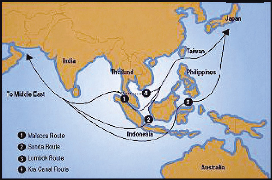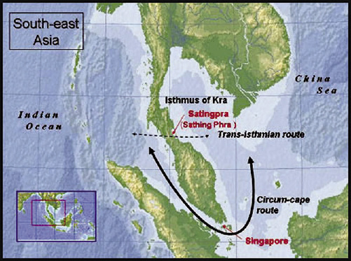 Things have changed, and for many different reasons we can look at these four different routes. There are two additional routes going through Indonesia—those are longer routes. But the shortest route goes through the Kra Canal. The significance is this: It connects two oceans, the Indian Ocean and the Pacific Ocean.