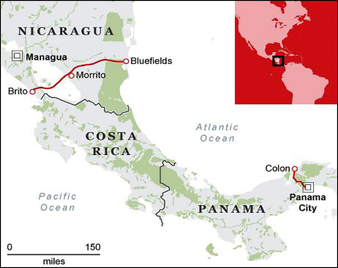 Now, let’s move to the Nicaragua Canal (Figure 4). That will be a second canal connecting Pacific and Atlantic oceans, second to the Panama Canal.