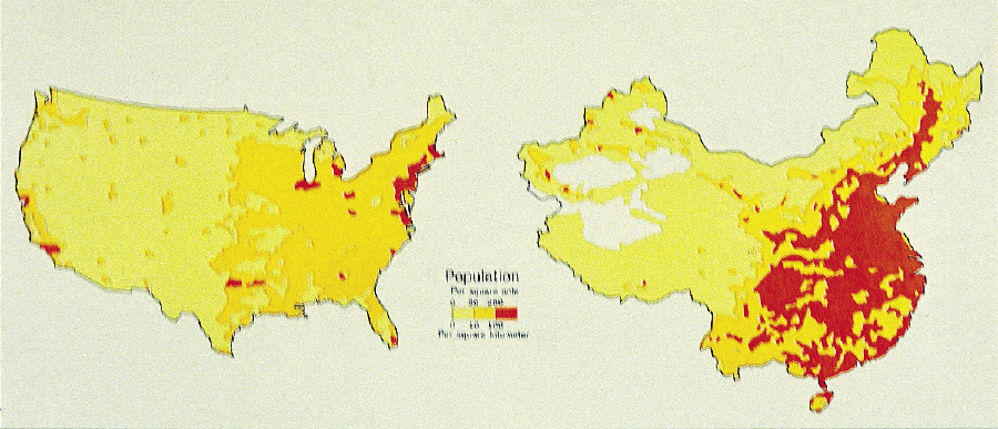 Next I’m going to talk about the South-North Water Diversion project in China. Figure 7 shows China and the United States: two countries with similarities, but very strong dissimilarities. Similar latitudes, similar size—except the population densities are very different. China has 1.3 billion people, while we only have 300 million people in America. And America is very fortunate, because our precipitation occurs from coast to coast, fairly evenly distributed, and not only spatially distributed, but also well distributed seasonally. Seasonal distribution is fairly uniform in America; but the rainfall distribution in China is highly uneven. It is concentrated in the Summer and Spring. It’s also concentrated in the Southeast, and becomes very sparse in the Northwest.