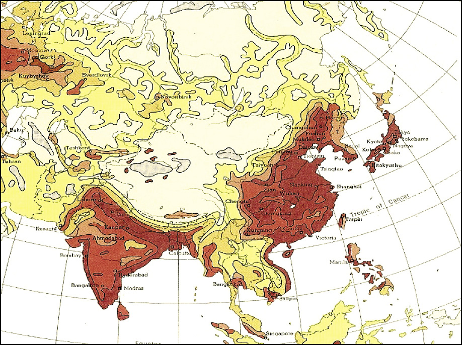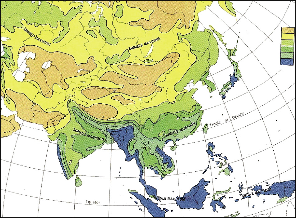 China is number one in population, but number six in water resources. Which means water distribution, water conservation, water storage become very important in that country. If you look at the precipitation patterns (Figure 8), you can see that there’s much more precipitation in the southern coastal area, which becomes less and less as we go north and west.