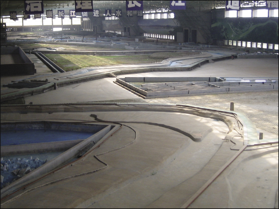 I mentioned to you that when they built this reservoir and dam, they did a physical modeling study in an indoor laboratory. I couldn’t believe the size of the indoor physical model (Figure 23)! I’ve never seen and couldn’t believe the size of the indoor physical model, I’ve never seen such a super indoor laboratory in my entire career. You know, we have a lot of hydraulic laboratories, the largest one being the Vicksburg, Miss., waterways experimental station of the Army Corps of Engineers; but they are not even one-third of the size of this indoor laboratory in China used for the study of the Yangtze River and the Three Gorges Dam.