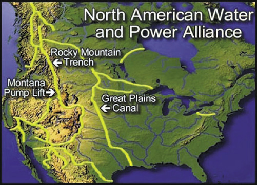 I want to go quickly to NAWAPA (Figure 25). This really is a vision of the North American continent, as well as the world community, because this network of water distribution systems—reservoirs, dams, channels, pipes, culverts, and so forth—redistributes water from abundant areas to the water-scarce areas. That is going to generate so much wealth in North America. And let me say this: NAWAPA is the vision of the future. NAWAPA will have a lot of pumping stations. You have to pump water up, and let the water go down. But once water is pumped and then the water comes down, it also drives hydroturbines. Energy is also generated by the water distribution system of NAWAPA.