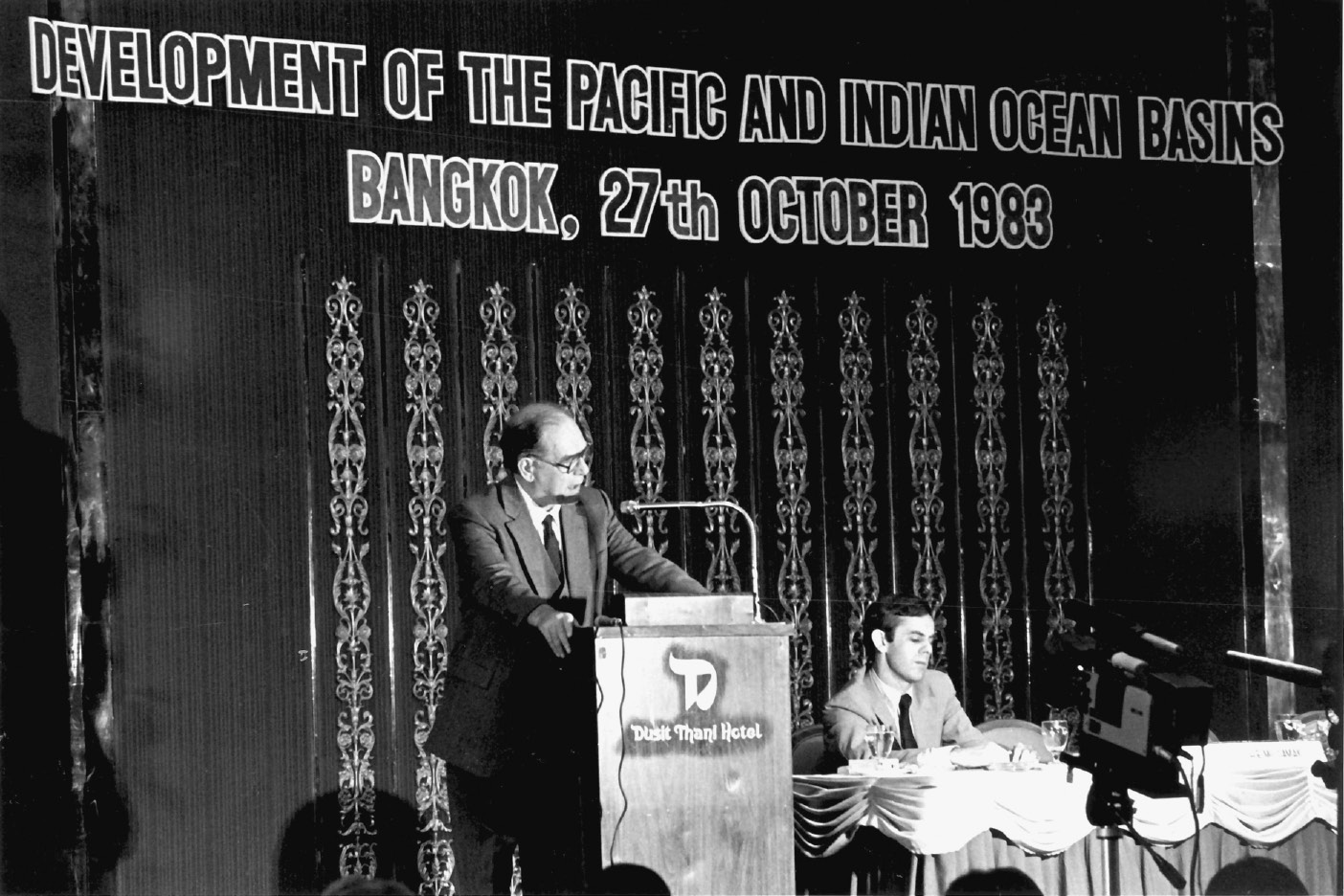 Lyndon LaRouche addresses the October 1983 conference in Bangkok on Pacific and Indian Ocean development. |