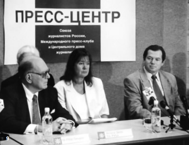 2001: At the invitation of Dr. Sergei Glazyev (right), Duma chairman of the Economic Affairs Committee, Helga and Lyndon LaRouche revisit Moscow. At a hearing before the Duma Economic Affairs Committee on June 29, 2001, LaRouche explained his policy to reorganize the world financial system and a global economic recovery in the context of Eurasian cooperation, in front of 150 members and government advisors. |