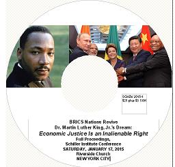 An event of historic importance, with almost 300 participants, was convened at the Riverside Church in New York City January 17, 2015 under the auspices of the Schiller Institute, to launch the next phase of mobilization for the United States to return to its Hamiltonian roots and join the BRICS. As befit the fact that the event occurred on the weekend of the Martin Luther King commemoration, the conference was dedicated to the subject: "BRICS Nations Revive Dr. Martin Luther King's Dream: Economic Justice Is an Inalienable Right." The Manhattan event was streamed live to viewers across the globe and to simultaneous satellite events held throughout the nation and Ibero America. CLICK HERE FOR THE PROGRAM (HTML). (PDF)