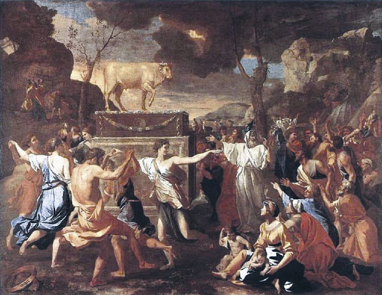 “The Adoration of the Golden Calf,” by Nicolas Poussin, c. 1634. In today’s world, says Zepp-LaRouche, the Golden Calf “is the monster which must be kept happy, even if it means the sacrifice of millions and billions of human beings.” |
