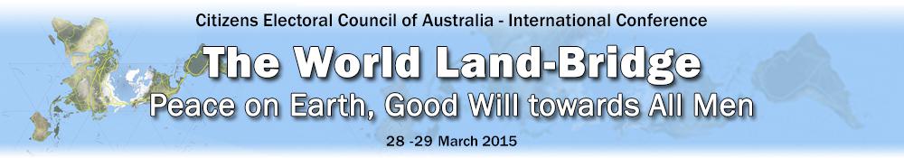 April 3, 2015—Melbourne, Australia was the scene of a landmark international conference held March 28-29 on “The World Land Bridge: Peace on Earth, Goodwill Towards All Men”. Speakers from seven other countries joined Australian ones, in person or by live or pre-recorded video, to promote awareness of the collaborative process under way among the BRICS grouping of powerful nations—Brazil, Russia, India, China, South Africa—and the potential it represents for a new, just world economic order.