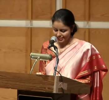 So please join me in welcoming Shruti Sen to recite Tagore for us.