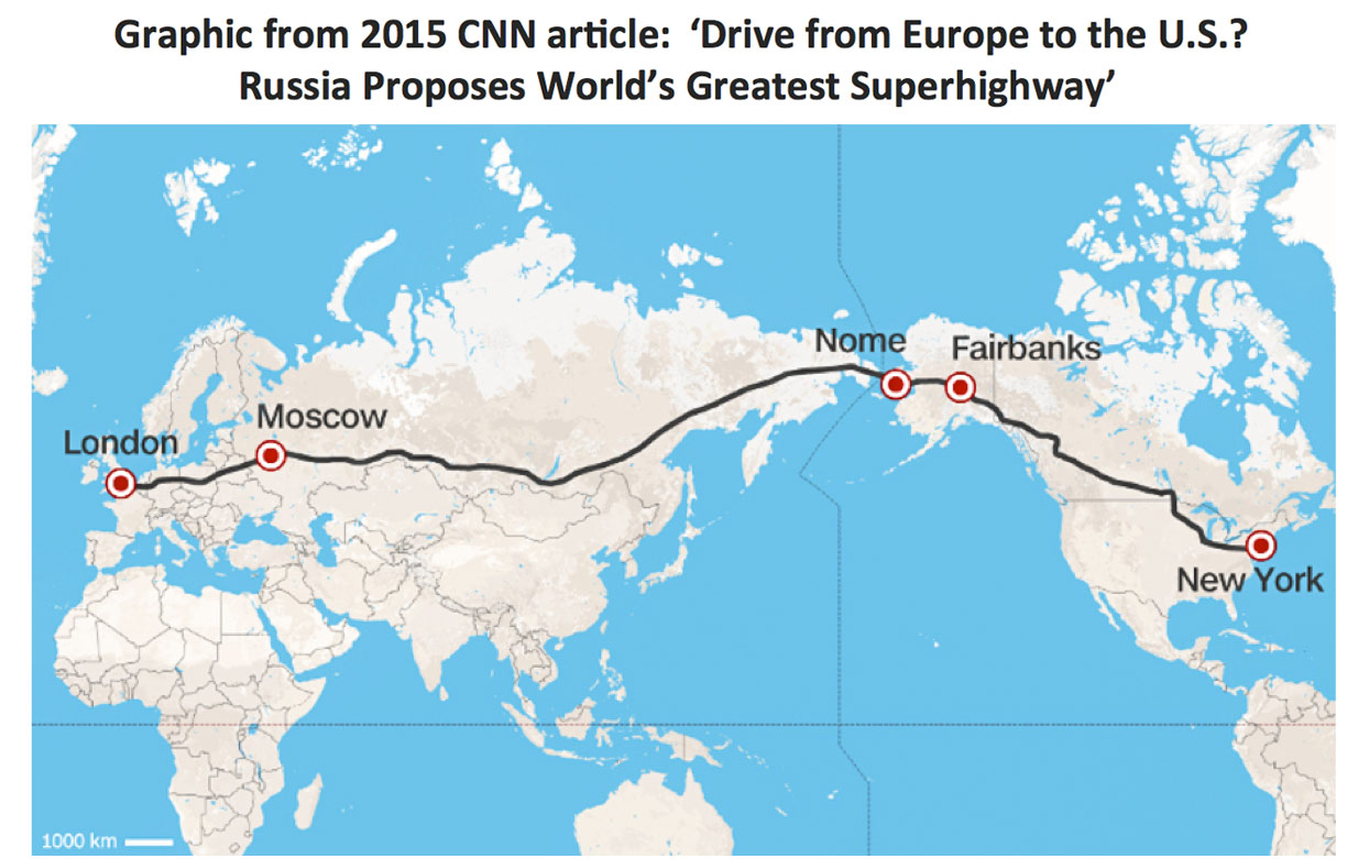 [Fig. 8] There was an article that was published in the Atlantic Monthly in July 2015, in which I was interviewed, Mr. Yakunin from the Russian Railway was interviewed, as well as a gentleman by the name of Fyodor Soloviev from Alaska. We were all interviewed about the possibilities of building a Bering Strait Tunnel. There was also an alternative bridge, although with the meteorology there, that might not be the best way to go. But certainly there is a basis for connection.