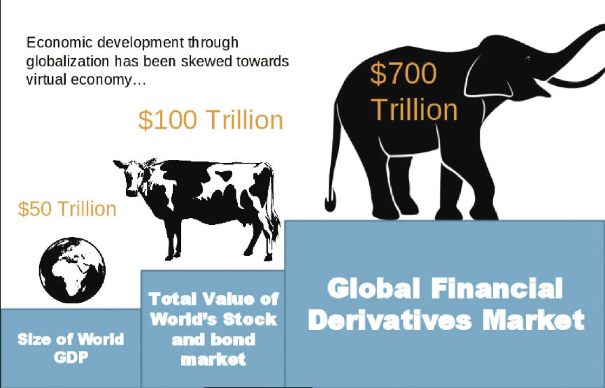 For the last half-century, economic development through globalization has been skewed towards the virtual economy and service industries, including financial derivatives. This has been accompanied by astronomical national debts with ever-widening income gaps, wealth disparity, instability in the financial system itself, and all its inherent social woes.