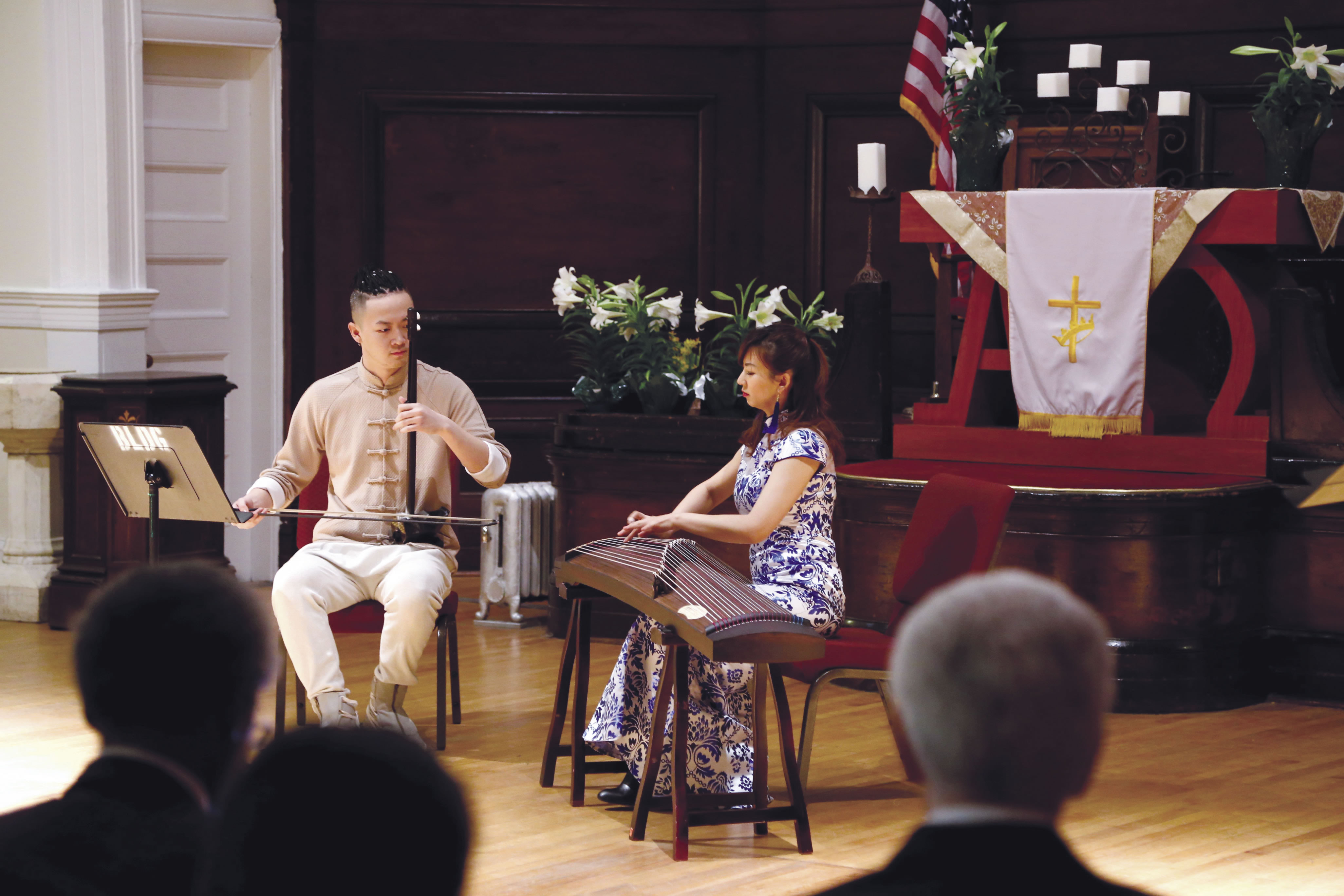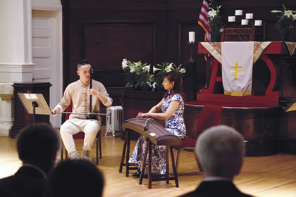 Musicians perform traditional Chinese songs for stringed instruments, the ehru and the guzheng, at the April 14 concert sponsored by the Foundation for the Revival of Classical Culture. |