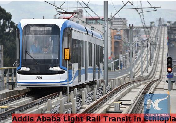 A passenger train on Chinese financed and built light rail in Addis Ababa, Ethiopia. |