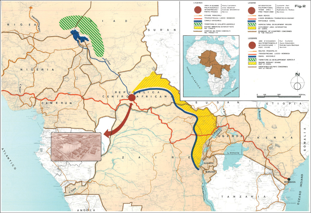 The project will generate up to 30-35 billion kWh of hydroelectricity per year through the mass movement of water by gravity; expand a series of irrigated areas for crops or livestock over an area of 5-7 million hectares in the Sahel zone in Chad, north-east Nigeria, northern Cameroon and Niger. Transaqua will also intersect the Lagos-Mombasa Trans-African Highway (ports, river-roads goods distribution)