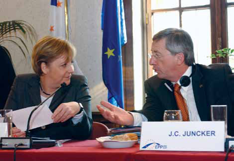 German Chancellor Angela Merkel and Euro Group president Jean-Claude Juncker in 2006. Juncker: “We decide on something, put it out publicly, and wait awhile to see what happens. If there is no great uproar, no uprisings, since most people don’t even grasp what was decided, then we proceed. Step by step, until there is no turning back.” For a video clip of Juncker in April 2011 saying he has often “had to lie,” see http://euobserver.com/19/32222. |