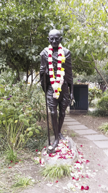 ![]() Statue of Mahatma Gandhi in New York City, with a garland placed there on the anniversary of his birthday, Oct. 2, 2014. Modi said of Gandhi: In the fight for freedom, he gave each Indian the pride of contributing to the nation. |