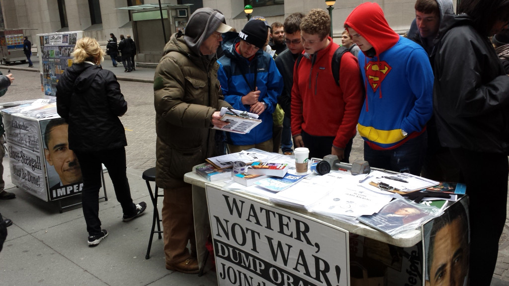 Speculation in water prices during the drought is another Wall Street crime which calls for breaking up the big banks with Glass-Steagall. Here, LaRouchePAC holds a rally on Wall Street, April 9. |