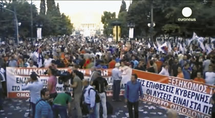 A June 2015 rally against austerity in Greece. Southern Europeans are acutely aware of the danger the City of London-Wall Street policy means for their lives. |