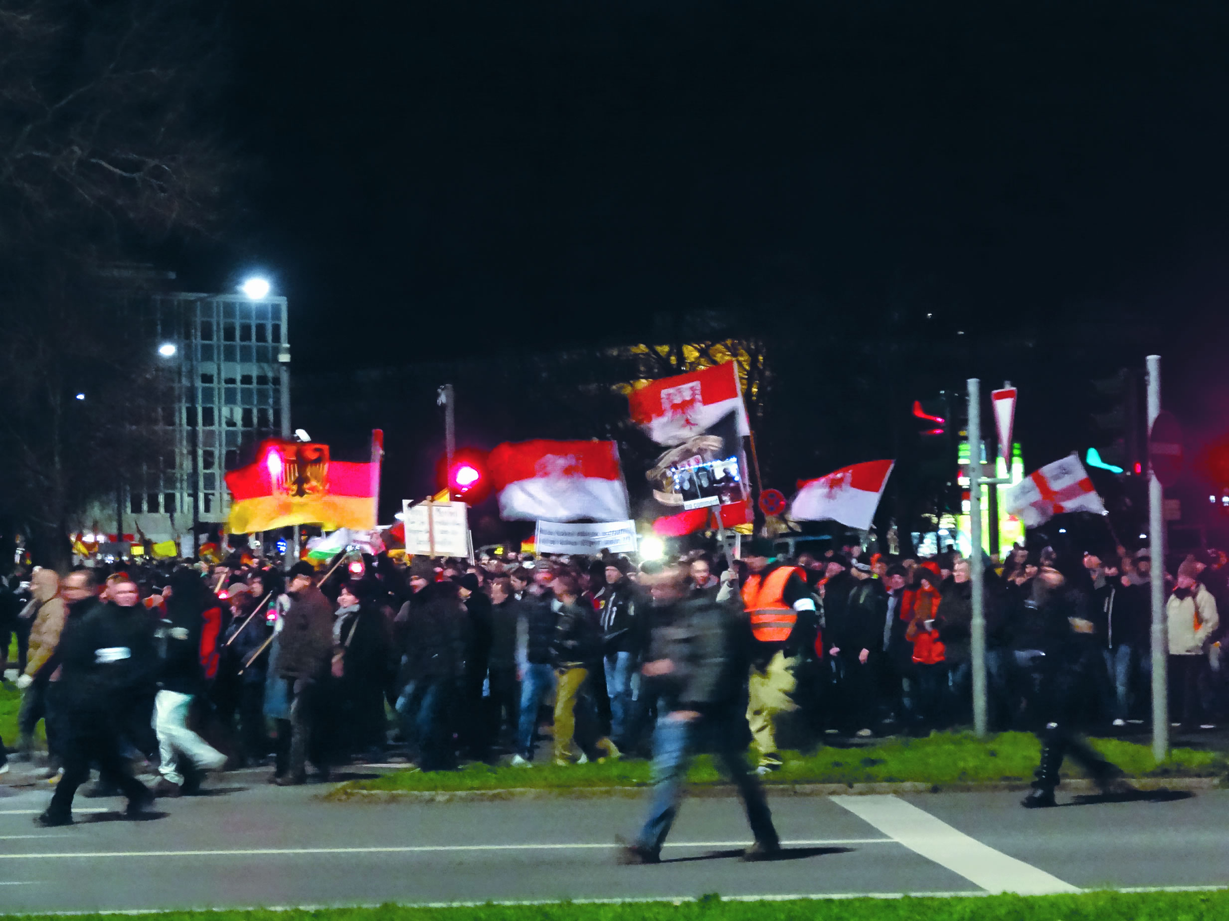 The monetarist paradigm is producing fascist movements, such as that of Donald Trump in the United States and Alternative für Deutschland in Germany. Here, a demonstration of 40,000 organized by the xenophobic, right-wing Pegida movement in Dresden, Germany. |