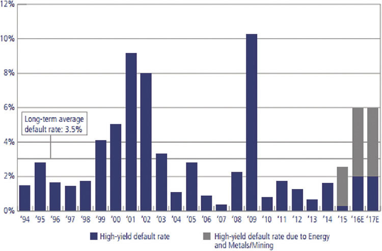 The default rate for all non-financial corporations has jumped from 3.0% at the start of 2016 to 5.0% at its end. It is continuing to rise, and S&P Global Fixed Income Research warns it will be at 5.6% in June. It estimates that 99 U.S. companies will default in the June 2016-June 2017 period, compared to 79 in the preceding year, and the liabilities involved will be 85% higher.