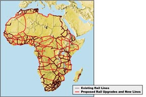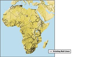 Criss-cross this "Transaqua Project" region with priority highways (e.g., a Trans-Africa highway of 6,000 km from the eastern port of Mombasa on the Indian Ocean, in Kenya, to Lagos, Nigeria, on the Atlantic) plus rail links, and Central Africa becomes a world center for