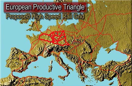 High-speed rail was one of the major components of the Triangle plan, as it would speed the movement not only of people, but also of freight through the area.The technology of choice is magnetic levitation. The second essential infrastructural pillar was the energy supply, with concentration on nuclear power. There is no way that sufficient energy expansion could be achieved--including replacement of the unsafe Chernobyl types of nuclear reactors in the East--without a renaissance of nuclear energy, most likely around the newly developed small reactors.