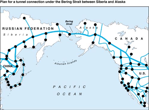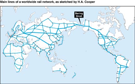 Imagine the grandchildren of those in their 20's today, being able to have breakfast on a mag-lev train starting at the tip of South America, to enjoy lunch in the US, and dinner over the Bering Straits? A choice of the Northern, Central, or Southern Routes through Eurasia will enable the traveller to reach the tip of Africa, going south on either coast of that continent, and arrive at the tip of Southern Africa-- all by LAND ROUTES!!
