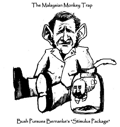 ![]() Will U.S. citizens bring about their own demise, at the hands of the financial slime-mold, through foolish adherence to belief in the potency of President Bush’s, and leading Presidential conaidates’ “stimulation packages’? |