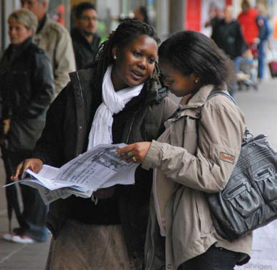 The Schiller Institute’s vice president in Germany, Portia Tarumbwa-Strid, upset the malthusian agenda of the “Save Lake Chad” conference in N’Djamena, by insisting on a program to develop the region for the benefit of the human population. Here she is shown (left) organizing in Germany. |