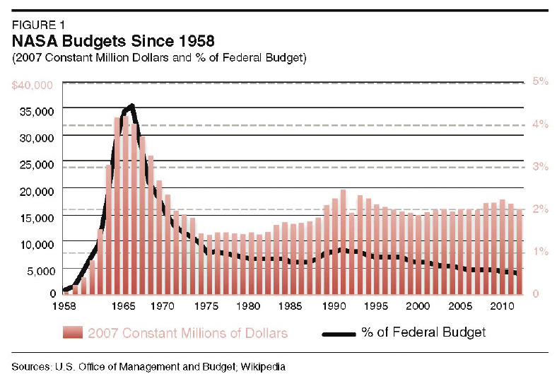 And so, NASA's percentage of the budget peaked in about 1966; and then, you see, from that point on, you've had a dramatic collapse down to the current state, which is a mere maybe 1% of the budget going toward NASA, going toward advancing space, technology, and everything that goes along with it.